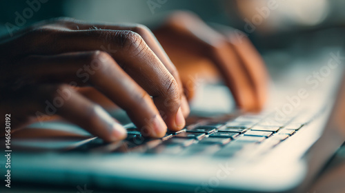 A close-up shot of hands typing on a laptop keyboard, highlighting digital interactions.