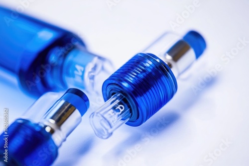 A close-up shot of two blue water bottles on a flat surface