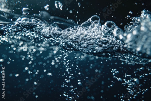 A close-up shot of water bubbles rising from a surface, with a shallow depth of field to emphasize their texture and movement