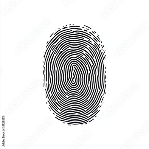 A close-up view of a detailed black fingerprint illustration on a clean white background.