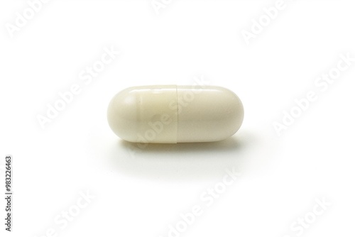 A close-up view of a pill sitting on a clean white surface, ready for use or examination