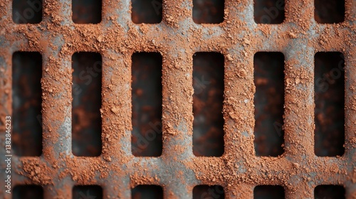 A close-up view of a rusted metal grate, showcasing its textured surface and weathered appearance.
