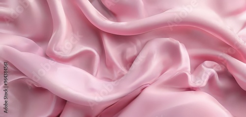 a close-up view of a soft, flowing pink satin fabric, with its folds and creases creating a sense of movement and texture.