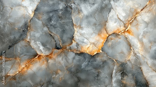 A close-up view of a textured stone surface with gray, white, and orange patterns.