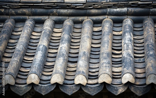 A close-up view of a traditional Korean tiled wall, presented in a minimalist aesthetic with soft natural