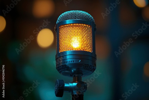 A Close-up View of a Vintage Microphone with a Golden Glow