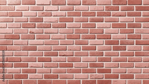A close-up view of a wall constructed from light reddish-pink bricks. The bricks are arranged in a regular, running bond pattern, creating a textured surface