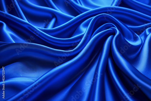 A close-up view of blue satin fabric, with its smooth texture and shiny surface reflecting light.