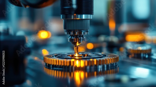 A close-up view of gears and mechanical components being assembled by automated systems.