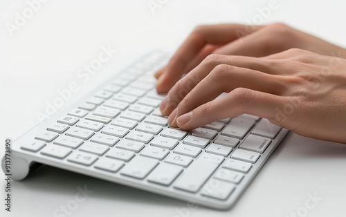 A Close-Up View of Hands Using a Wireless Keyboard Isolated on Transparent Background PNG.
