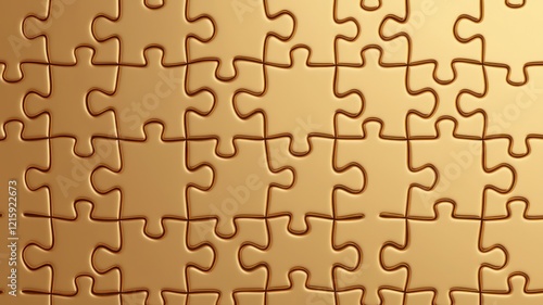 A close-up view of interlocking puzzle pieces, showcasing a seamless and uniform golden design that emphasizes texture and pattern.