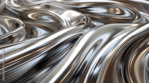 A close-up view of shiny, flowing metallic textures resembling liquid metal.