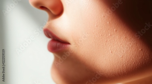 A close-up view of smooth, hydrated skin, showcasing the effects of vitamin C serum and light foundation for a spring glow. Perfect for skincare ads targeting sensitive skin care.