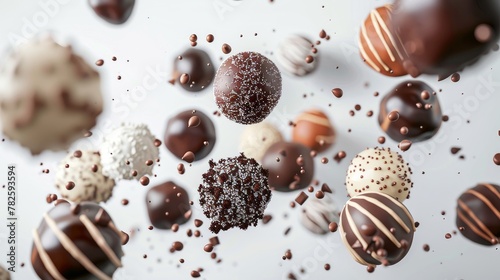 A cluster of chocolate truffles in various flavors d style isolated flying objects memphis style d render AI generated illustration