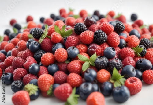 A cluster of colorful mixed berries on a white background, vectors, food, freshproduce