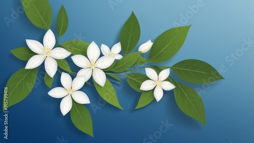 A cluster of delicate white jasmine flowers set against a vibrant blue background, creating a serene and elegant contrast.