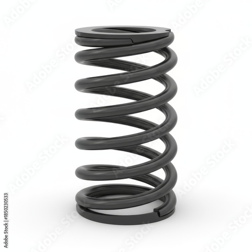 A coiled metal spring, designed for compression or tension, showcasing a sleek, cylindrical shape and smooth surfaces.