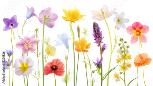 a collage of spring flowers, illustration, isolate on white