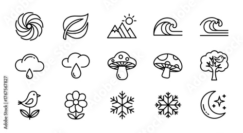 A collection of abstract, swirling, and geometric line art icons and symbols, presented in a clean, minimalist style on a black background, perfect for digital design, branding, and modern graphic