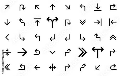 A Collection Of Arrow Isolated Silhouette Solid Icons With Navigation,Arrow,Left,Direction,Arrows Pictograms And Infographics Design Elements Vector Illustration
