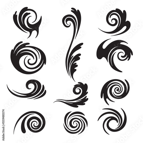 A collection of beautifully crafted vintage art silhouette decorative swirls spirals and floral design elements for various graphic projects