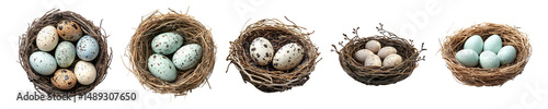 A Collection of Beautifully Spotted Eggs in Natural Nests, Isolated on Transparent, white background