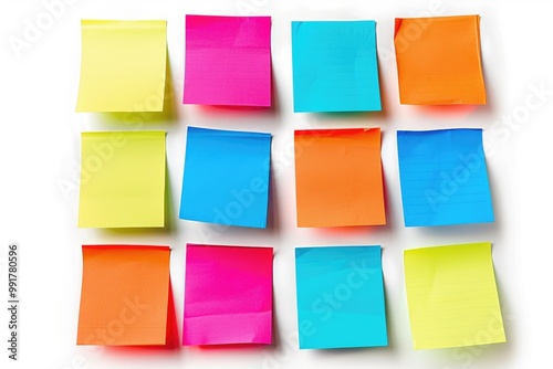 A collection of bright and cheerful post-it notes stuck to a white surface