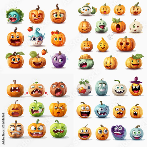 A collection of cartoon faces with different expressions, including happy, sad