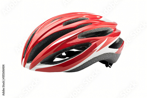 A collection of colorful helmets in red, black, and blue, isolated on a white background, showcasing protective gear for biking and cycling activities