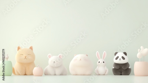 A collection of cute, minimalist animal figurines arranged on a soft pastel background, perfect for decoration or inspiration.