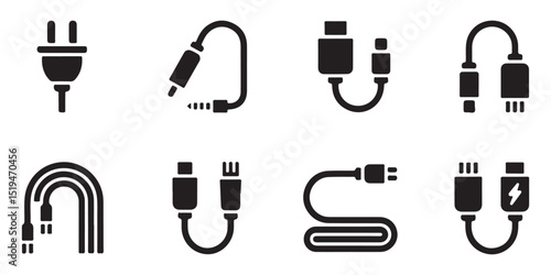 a collection of different types of electrical connectors and cables, including power plugs, audio jacks, USB cables, and charging cables.