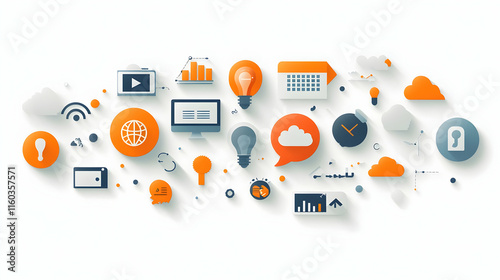 A collection of digital icons representing technology and communication concepts.