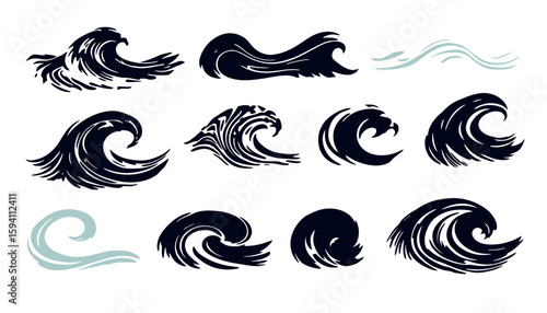 A collection of dynamic vector illustrations showcasing water splash effects, perfect for graphic design projects, presented in a clean PNG format against a transparent background.