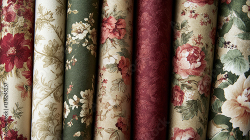 A collection of elegant floral patterned wallpapers showcasing rich colors and intricate designs, perfect for interior decoration inspiration