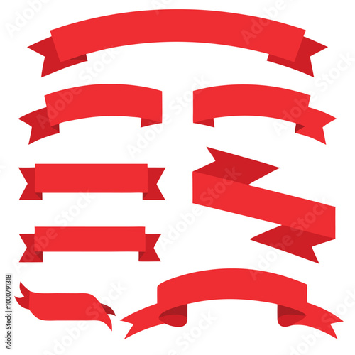 A collection of festive red and gold ribbons, banners, and award scrolls with stars, perfect for decoration and celebration design