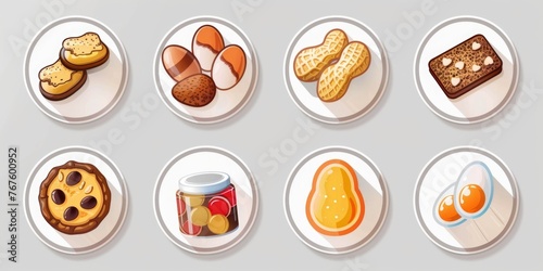 A collection of food items including cookies, crackers, and nuts. The image is in a cartoon style and has a playful, fun vibe