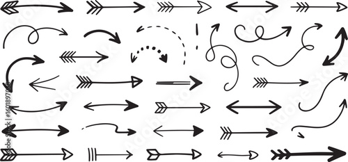 A Collection of Hand Drawn Black Arrows Various Styles and Directions Vector Illustration Set