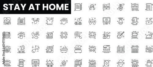 A collection of icons symbolizing various home activities during isolation.