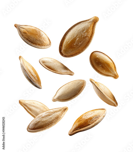 A Collection of Naturally Shaped Pumpkin Seeds with Varying Tones and Textures, Perfect for Culinary and Decorative Uses, Isolated on Transparent and White Background