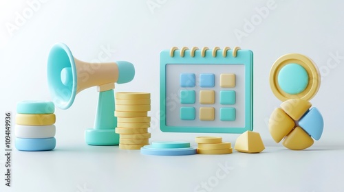 A collection of pastel-colored business and planning tools in a minimalistic style.