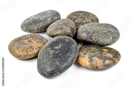 A collection of smooth river stones in various shades. Each unique stone tells a story of nature. Ideal for decoration or relaxation. Generative AI.