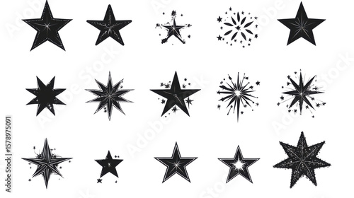 A collection of thirty black stars and sparkle decorative icons set isolated on white background