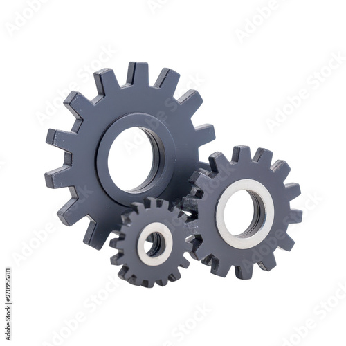 A collection of three gears in different sizes, representing engineering, mechanics, and automation concepts.