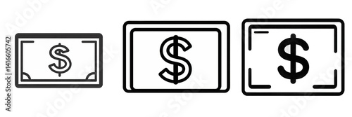 A collection of three stylized dollar bill illustrations showcasing varying designs and styles, suitable for financial themes and educational materials isolated on white or transparent png