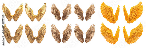 A collection of various wings in different colors and styles, showcasing intricate feather details and diverse designs.