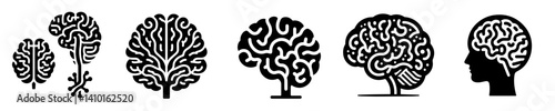A collection of vector illustrations of the evolution of brain shapes from simple to human, as a symbol of the development of ways of thinking.