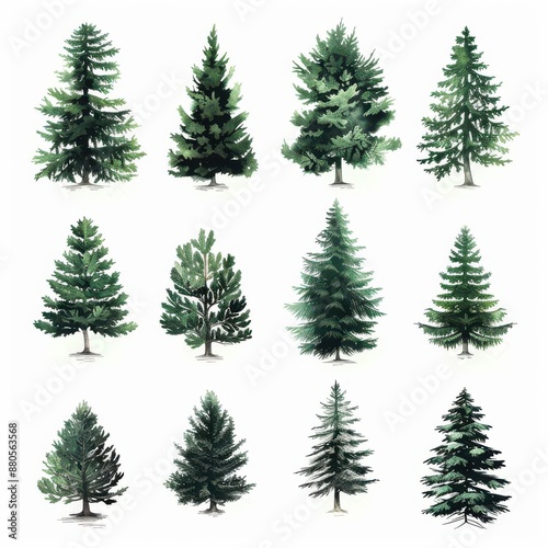 A collection of watercolor trees