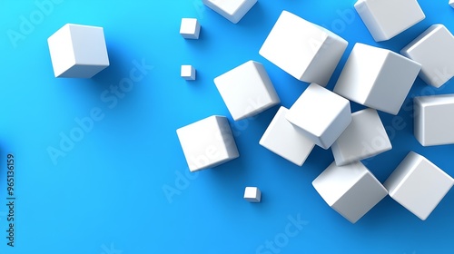 A collection of white cubes scattered against a vibrant blue background, perfect for modern designs and educational themes.