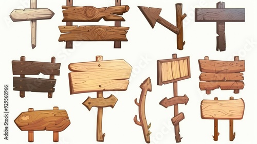 A collection of wooden signs with various designs and messages on a clean white background, suitable for use in graphic design, advertising, or as decorative elements