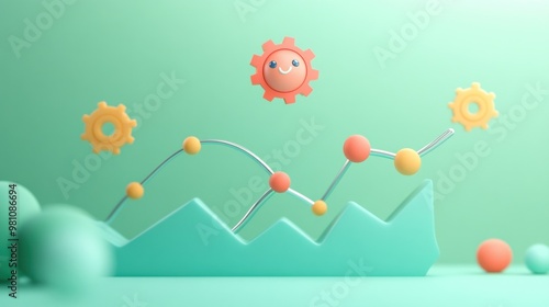 A colorful 3D illustration of a graph with playful elements representing data trends.